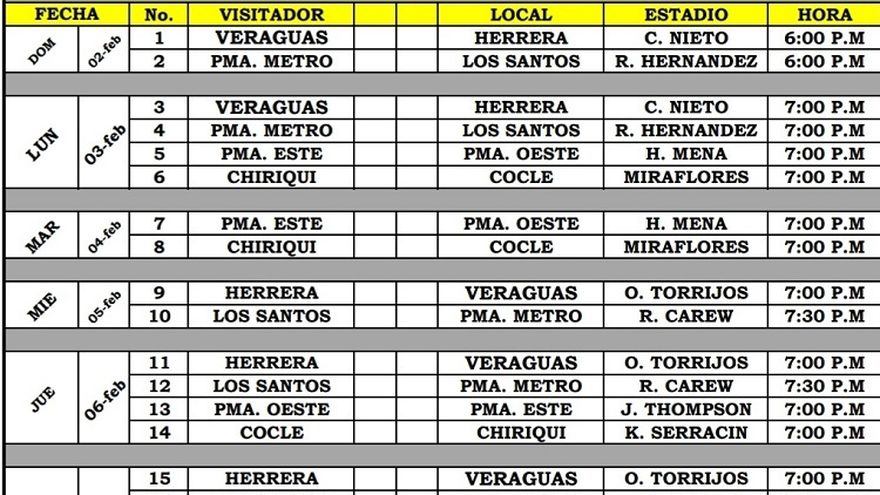 Mañana, lunes, jugarán el segundo duelo en el mismo escenario y también se ponen en marcha las contiendas de Coclé ante Chiriquí y Oeste frente a Panamá Este, en Penonomé y Chame, respectivamente.