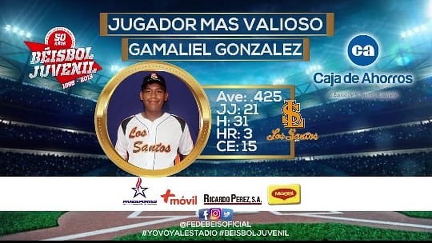 El receptor santeño Gamaliel González fue seleccionado esta mañana como el Jugador Más Valioso de la edición 50 del Campeonato Nacional de Béisbol Juvenil, Copa Caja de Ahorros, dedicado a los comentaristas Elías González y Eric Espino.
