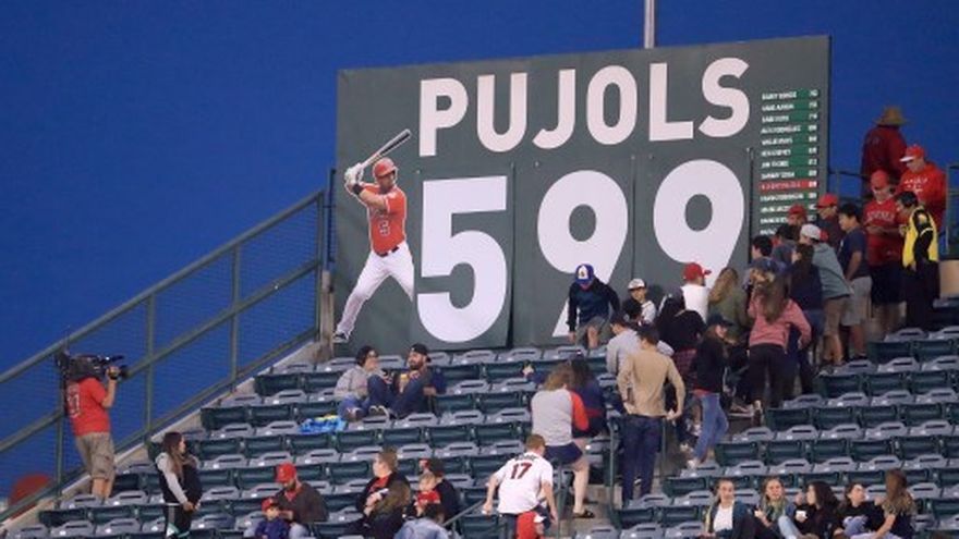 El dominicano Pujols quedó a un paso de batir la marca luego de un cuadrangular de tres anotaciones ante su compatriota Colón al principio de la mejor entrada de los Angelinos esta temporada.