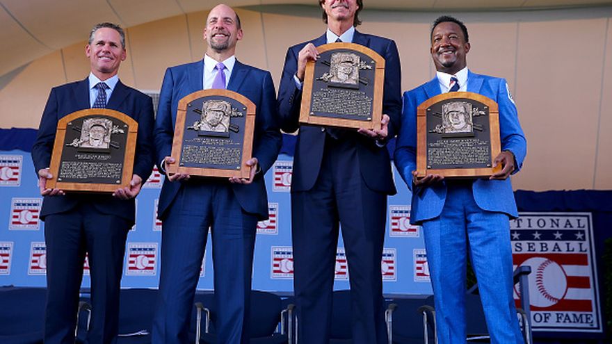 Los lanzadores Randy Johnson, el dominicano Pedro Martínez y John Smoltz, así como el intermedista Craig Biggio, lograron este domingo el máximo honor en el béisbol de las Grandes Ligas al recibir sus placas que los acreditan como miembros oficiales del Salón de la Fama de las Mayores, ante unos 50.000 espectadores.