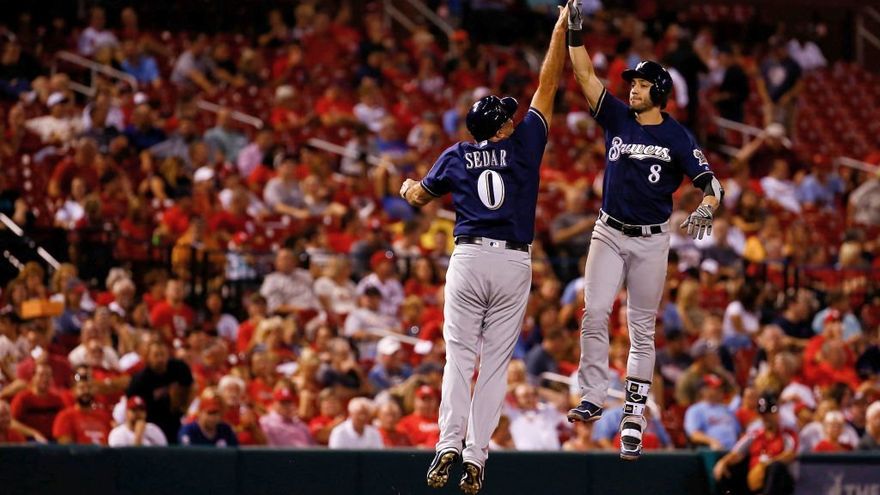 Braun (18) inició el castigo contra los Cardenales en el primer episodio con batazo de cuatro esquinas, solitario.