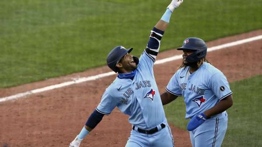 El también jardinero, el dominicano Teoscar Hernández, se embasó con un imparable y avanzó de primera a tercera con otro sencillo de su compatriota Vladimir Guerrero Jr.