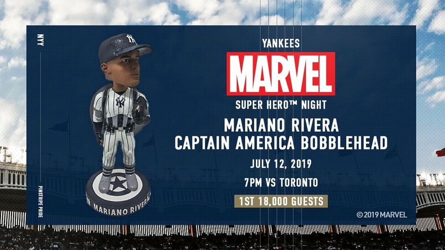 Dicha promoción consiste en que las primeras 18,000 personas que ingresen al coliseo recibirán un muñeco 'bobblehead' con la figura de Mariano Rivera, pero con un uniforme parecido al reconocido superhéroe de las tiras cómicas 'El Capitán América'.