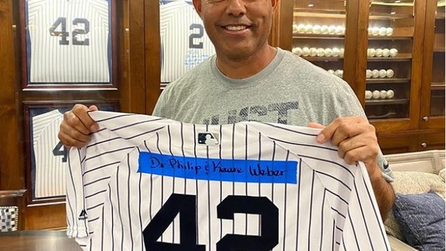 El panameño dedicó una camiseta con su número 42 al Dr. Phllips Kaare Weber del Plains Hospital.