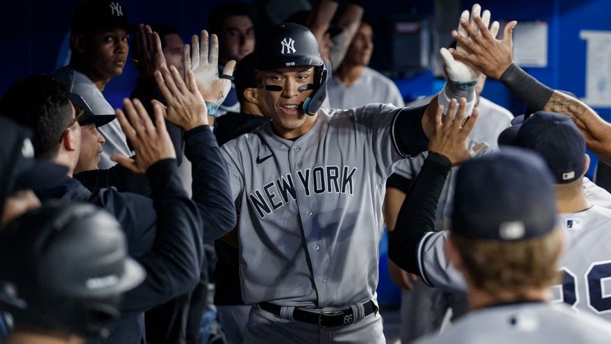Durante el octavo episodio del partido, que disputaron este lunes los Yankees y los Azulejos, el manager del equipo neoyorquino, Aaron Boone, fue expulsado por reclamar un lanzamiento que hizo el serpentinero del conjunto de Toronto, Jay Jackson, a Judge. Después de la expulsión, el jugador de los Yankees lanzó una mirada hacia sus compañeros, que estaban en el dugout, y bateó su segundo cuadrangular del juego.