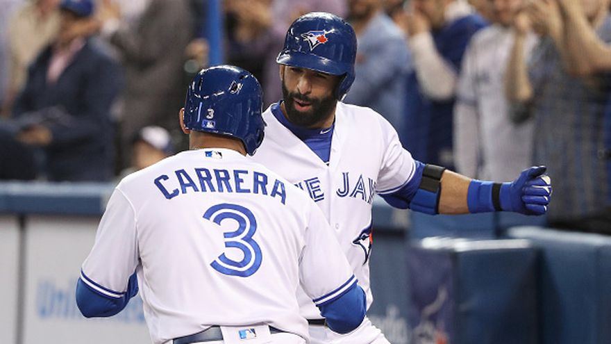 Del 2008 al 2017, Bautista conectó 288 de sus 344 jonrones en Grandes Ligas con los Azulejos, encabezando la liga en cuadrangulares tanto en el 2010 (54) como el 2011 (43). También ayudó a Toronto a clasificar para los playoffs por primera vez en 22 años, en el 2015, cuando el equipo avanzó hasta la Serie de Campeonato de la Liga Americana. Volvieron a dicha ronda en el 2016.