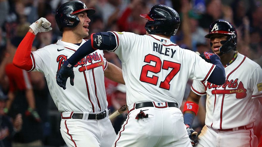 Los Bravos remontaron en el octavo por base por bola a a Acuña y largo jonrón por el jardín izquierdo de Riley frente al relevista Jeff Hoffman (1-1).