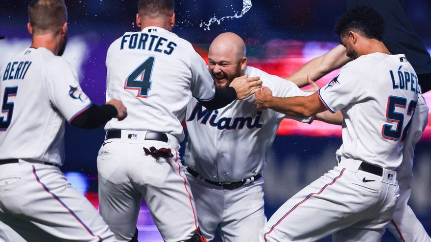El conjunto floridano puso así fin al partido al anotar cuatro carreras en el noveno para remontar el marcador.