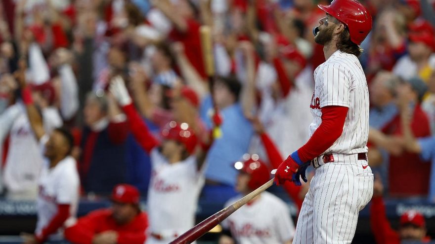 Harper, que llegó a 10 bambinazos en postemporada, conectó un jonrón de tres carreras en la tercera entrada y uno solitario en la quinta mientras los Phillies tomaban una ventaja de 2-1 en la serie de segunda ronda al mejor de cinco, que continúa el jueves en Filadelfia.