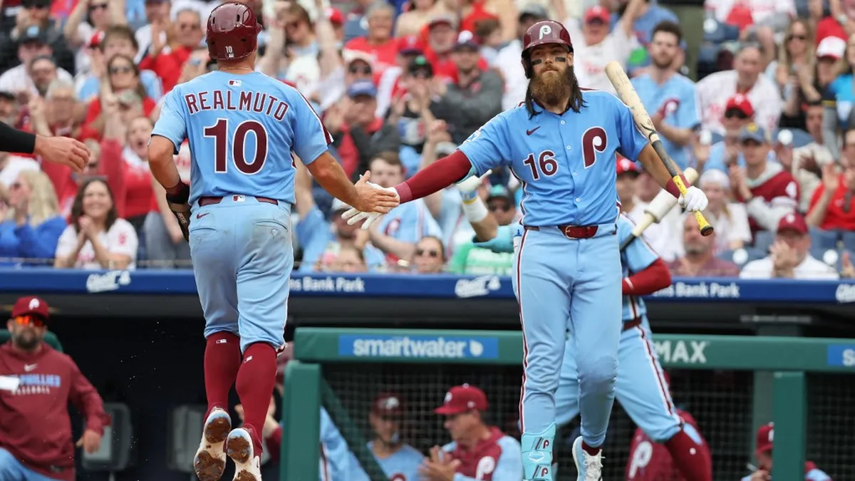 El receptor J.T. Realmuto conectó tres imparables, mientras que Bryce Harper impulsó una carrera con su primer doble de la temporada para Filis.