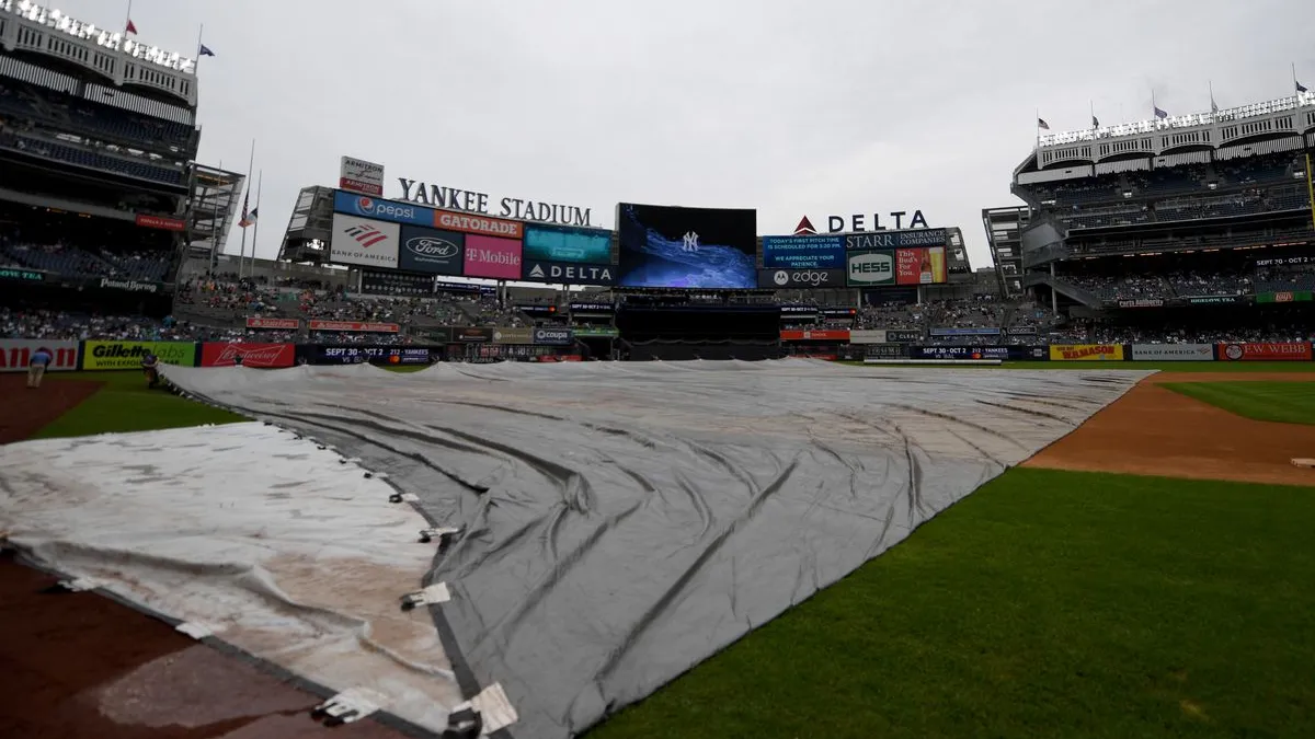 La lona cubre el terreno de juego del Yankee Stadium / Getty Images