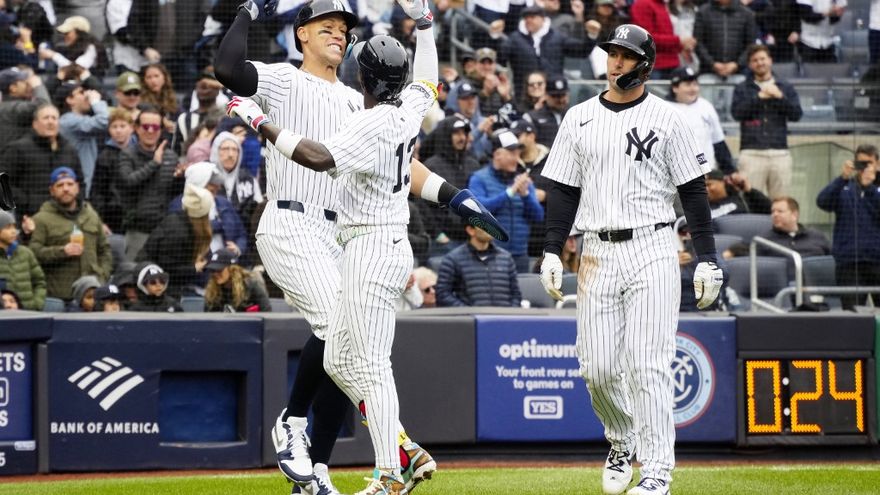El sábado, los Yankees fueron los primeros en encadenar jonrones en los tres primeros lanzamientos de un partido de Grandes Ligas, para un total de nueve vuelacercas, la mayor marca de la franquicia.