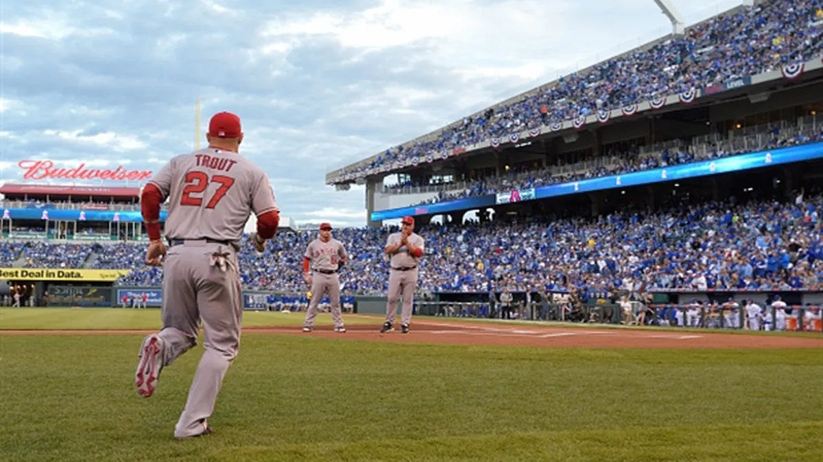 Trout, el actual Jugador Más Valioso de la Liga Americana, pegó un panorámico batazo en el quinto inning ante el dominicano Miguel Almonte. La pelota estuvo a punto de superar la colina detrás de la barda entre el jardín izquierdo y el central, a 410 pies de distancia.