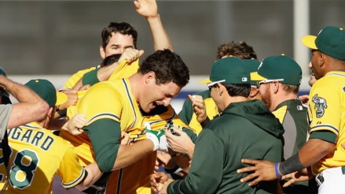 Nate Freiman empujó la carrera decisiva con un sencillo en el episodio 18 contra Mariano Rivera, dándole a los Atléticos de Oakland una victoria el jueves de 3-2 sobre los Yanquis de Nueva York con la que los barrieron en tres juegos. John Jaso inició el ataque con un sencillo contra Preston Claiborne (0-1). Luego Freiman puso fin al maratónico partido de cinco horas y 35 minutos en el mismo día en que los Yanquis parten a Anaheim para iniciar una serie contra los Angelinos. Momentos antes, el panameño Rivera le dio a Jed Lawrie apenas la 39na base intencional de sus 19 años de carrera. Jesse Chávez (1-0) ponchó a siete en poco más de cinco entradas en las que no permitió carrera, para llevarse la victoria. Oakland se convirtió en el primer equipo de la Liga Americana en jugar dos partidos de 18 innings; los Atléticos y Washington libraron un maratón similar en 1971. Por los Yanquis, el dominicano Robinson Canó de 6-3, con dos empujadas. El panameño Mariano Rivera permitió dos imparables y una base por bola en un partido donde no sacó outs.
