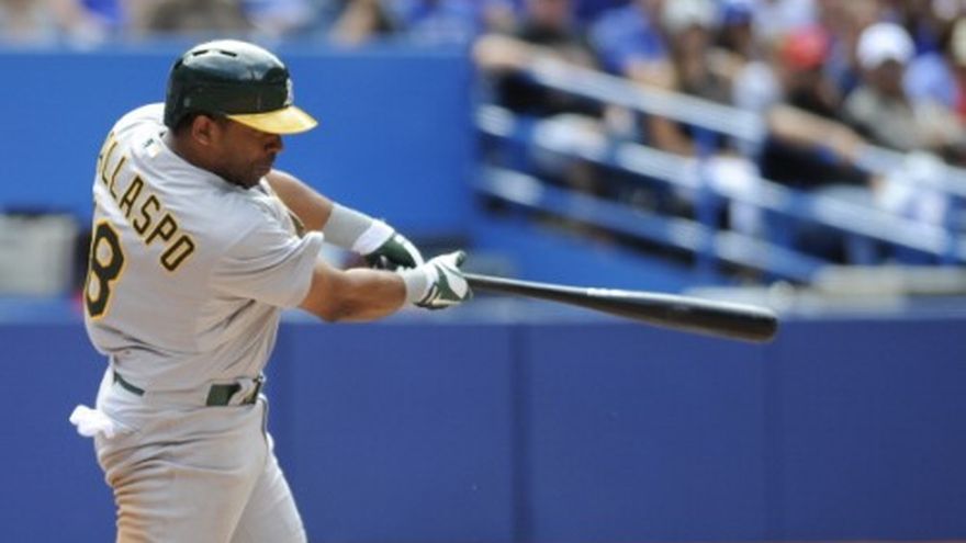 El venezolano Alberto Callaspo rompió un empate con un doble de dos carreras en la novena entrada y encaminó el lunes a los Atléticos a una victoria por 5-1 sobre los Azulejos. Callaspo, quien el domingo había quebrado otro empate con un doble en la octava, en un juego que Oakland ganó 6-4, disparó un batazo de dos esquinas con la pizarra igualada 1-1 y la casa llena contra el taponero Casey Janssen (4-1). Se redimió así de un error que había cometido en la séptima, que permitió a Toronto igualar el juego. Los Atléticos habían perdido seis de siete juegos antes de venir a Toronto, pero se llevaron tres de cuatro contra los Azulejos, coleros de su división, y le pisan los talones a Texas, líderes de la división Occidental de la Liga Americana. Con la pizarra empatada, los Atléticos llenaron las bases en la novena y Collaspo sacó un batazo con la cuenta 1-0 hacia la esquina del jardín derecho. Stephen Vogt impulsó otra con un sencillo y acto seguido Eric Sogard pegó un elevado de sacrificio. El derecho Dan Straily, que venía de perder cuatro aperturas seguidas, espació seis hits y una carrera en siete entradas y un tercio. Chris Young, el primer bateador de Oakland, saludó al abridor de los Azulejos J.A. Happ con un jonrón en la primera entrada y la ventaja duró hasta la séptima, en que Callaspo no pudo fildear una rola del dominicano José Bautista hacia la antesala y permitió que entrase una carrera. Happ permitió tres hits y una carrera en siete innings. La victoria se la llevó Ryan Cook (5-2), quien sacó los dos últimos outs de la octava. Collaspo se fue de 4-2 con dos empujadas y una anotada. Por Toronto, el dominicano José Reyes de 4-1 con una anotada y sus compatriotas Bautista de 3-0, Edwin Encarnación de 3-1 y Emilio Bonifacio ce 3-1.