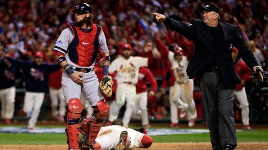 En uno de los desenlaces más extraños en la historia de la Serie Mundial, una obstrucción del tercera base Will Middlebrooks a Allen Craig en el noveno inning permitió a los Cardenales de San Luis llevarse el sábado una victoria 5-4 sobre los Medias Rojas de Boston e irse al frente 2-1 en el Clásico de Otoño. Con corredores en tercera y segunda con un out, así como el infield adelantado, Jon Jay bateó una roleta que el segunda base Dustin Pedroia y seguido tiró al plato para poner fuera a Yadier Molina. El tiro del receptor Jarrod Saltalamacchia se fue al jardín izquierdo y Middlebrooks, tirado de estómago sobre la grama, levantó ambas piernas, lo que impidió el avance de Craig. Jim Joyce, el umpire de la antesala, decretó de inmediato la obstrucción. Aunque el guante de Saltalamacchia tocó primero a Craig al deslizarse en el plato tras el tiro del jardinero Daniel Nava, el umpire principal Dana DeMuth cantó quieto y apuntó hacia la tercera base, señalando que había ocurrido una obstrucción. Boston había empatado el juego 4-4 al anotar dos veces en el octavo, respondiendo luego que un doble de dos carreras de Matt Holliday puso al frente 4-2 a San Luis en la baja del séptimo. La victoria pone a los Cardenales en una posición envidiable en el Clásico de Otoño. De las 55 instancias previas que el duelo por el título de las Grandes Ligas tuvo un empate 1-1, el ganador del tercer juego se coronó campeón en 37 ocasiones, y en 11 de las últimas 12. La excepción se dio en 2003 cuando los Marlins de la Florida remontaron ante los Yanquis de Nueva York.