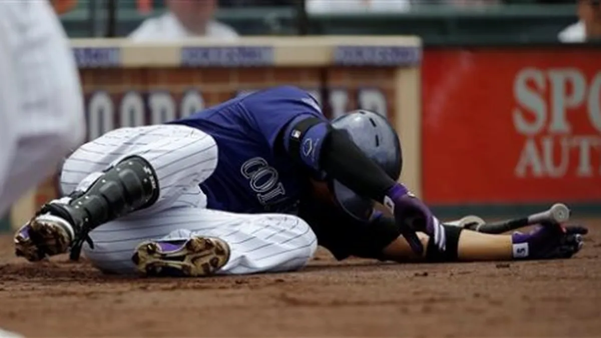 El astro venezolano Carlos González de los Rockies de Colorado abandonó el partido contra los Nacionales de Washington con un moretón en el pie izquierdo tras ser golpeado por un batazo de foul en el primer inning. Mientras estaba en el círculo de espera, González fue alcanzado cerca del tobillo por el batazo de su compañero Jordan Pacheco. Un preparador físico del equipo lo atendió en el terreno y el jardinero izquierdo de los Rockies salió del partido tras caminar frente al dugout de Colorado. El equipo indicó que los resultados de una radiografía no mostraron fracturas. Tyler Colvin reemplazó a González, quien está bateando .299 y encabeza a los Rockies con 18 jonrones y 52 empujadas.