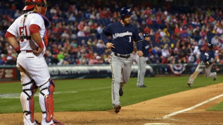 FILADELFIA (AP)-- Ryan Braun conectó un triplete de dos carreras durante una ofensiva de cuatro anotaciones en la octava entrada para que los Cerveceros vencieran el miércoles 9-4 a los Filis de Filadelfia, el quinto triunfo seguido de Milwaukee. El dominicano Carlos Gómez y Mark Reynolds pegaron cuadrangulares y el también quisqueyano Jean Segura bateó un doblete y remolcó una carrera para Milwaukee, que ha ganado esos cinco encuentros durante su gira como visitante. Los Cerveceros rompieron un empate de 4-4 en el octavo inning cuando anotaron tres carreras gracias a un hit ante el dominicano Antonio Bastardo (0-1). Reynolds anotó la carrera de la ventaja por un error del inicialista Ryan Howard. Braun, que bateó tres jonrones el martes, despegó a los Cerveceros en la pizarra con un triple de dos anotaciones al muro entre el jardín izquierdo y el central que puso el partido 7-4. Tyler Thornburg (2-0) relevó dos innings sin permitir carreras, lo que le valió el triunfo. Por los Cerveceros, los dominicanos Gómez de 5-3 con dos anotadas y una producida, Segura de 4-2 con dos anotadas y una remolcada, y Aramis Ramírez de 5-3 con una remolcada. Por los Filis, el panameño Carlos "Calicho" Ruiz de 5-2 con dos anotadas. El venezolano César Hernández de 4-0. El abridor dominicano Roberto Hernández de 1-0.
