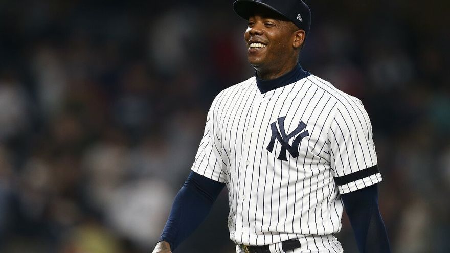 El cubano Chapman, de 31 años de edad, estuvo de 11-11 en oportunidades de salvamento por los Yankees, a la vez que permitió una sola carrera merecida en 11.1 entradas. El cerrador ponchó a 18 bateadores y dio apenas tres bases por bolas, limitando a la oposición a línea ofensiva de .128/.186/.256. Los 11 salvados de Chapman fueron la mayor cantidad en Grandes Ligas.