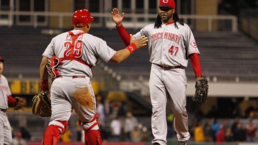 PITTSBURGH, Pensilvania, EE.UU. (AP) -- Johnny Cueto lanzó su segundo partido de tres hits frente a Pittsburgh en una semana y los Rojos de Cincinnati superaron fácilmente a los Piratas el martes con pizarra de 4-1. El dominicano Cueto (2-2) ponchó a cuatro y regaló tres bases por bolas al tiempo que extendió a 21 su racha de episodios sin recibir carrera -una marca personal- antes de conceder un jonrón a Andrew McCutchen con un out en la novena entrada. Mejoró a 15-4 en su carrera frente a los Piratas y se convirtió en el primer serpentinero de Cincinnati en lanzar juegos completos consecutivos desde que Mat Latos lo hizo en junio de 2012. El cubano Brayan Peña y Zack Cozart batearon hits productores seguidos frente al dominicano Edinson Vólquez (1-1) en la séptima entrada, con lo cual proporcionaron toda la ofensiva que Cueto requirió. Vólquez toleró dos carreras y cinco imparables, al tiempo que regaló un boleto y ponchó a tres. Por los Rojos, el cubano Peña de 4-2, con una anotada y una producida. El dominicano Cueto de 4-1, con una impulsada. Por los Piratas, los dominicanos Pedro Álvarez de 4-0 y Vólquez de 2-0. El venezolano José Tábata de 1-0.
