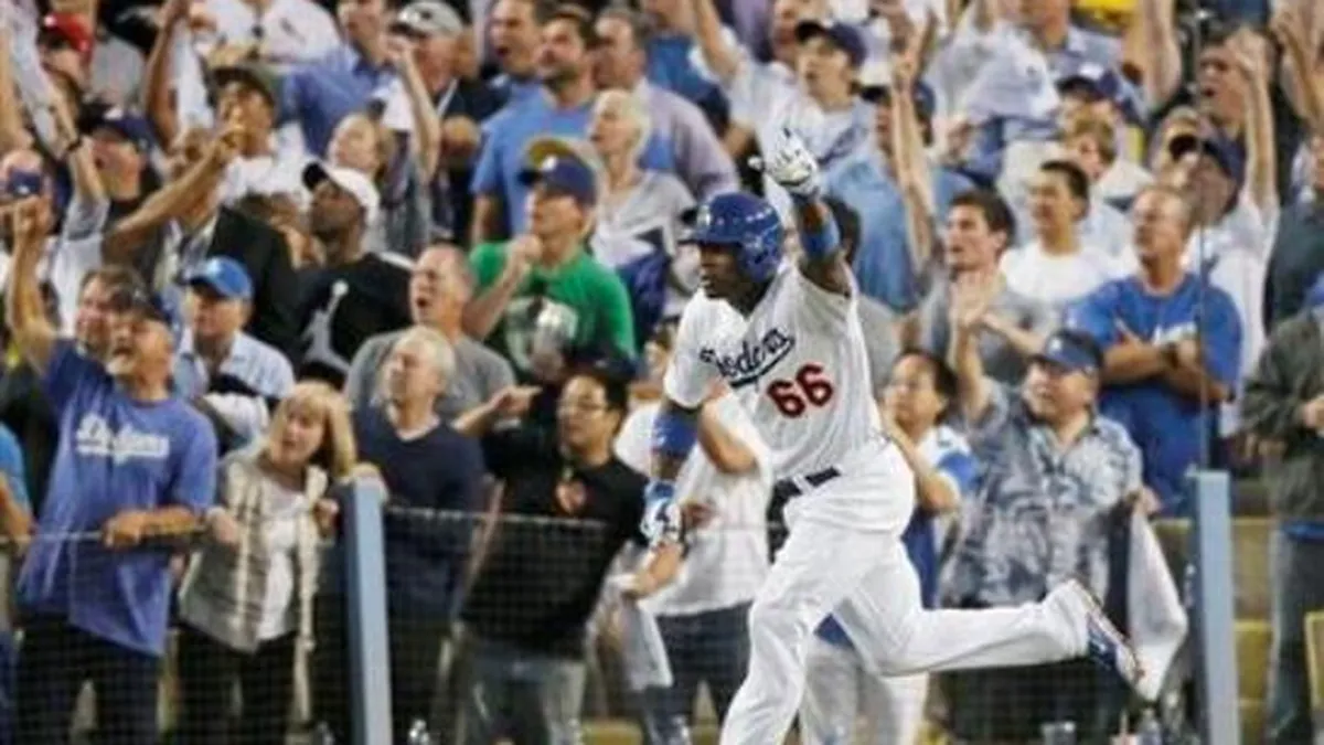 Hyun-Jin Ryu superó a Adam Wainwright al lanzar pelota de tres hits en siete episodios, Yasiel Puig hizo vibrar al Dodger Stadium con un triple y Los Ángeles no se amilanó en la serie de campeonato de la Liga Nacional tras vencer el lunes 3-0 a los Cardenales de San Luis. Un doblete remolcador de Adrián González puso fin a un bajón de 17 turnos con apenas un hit de los Dodgers con corredores en posición de anotar. Hanley Ramírez, quien estaba en duda para jugar por el diagnóstico de una costilla fracturada, bateó dos hits y remolcó una carrera para los Dodgers que ahora están abajo 2-1 en la serie. El cuarto juego será el martes. El retirado mánager Tom Lasorda, cuyo equipo ganó en 1988 el último campeonato de la franquicia, se puso de pie y agitó una toalla blanca en el octavo en medio del frenesí de los fanáticos de los Dodgers. Los dueños de casa pudieron contar con el dominicano Ramírez y el jardinero central Andre Ethier de vuelta en la alineación cuando pudieron demostrar en la práctica de bateo que estaban en condiciones para jugar. Ramírez jugó con un protector liviano para salvaguardar la costilla izquierda rota, luego de recibir un pelotazo de Joe Kelly en el primer juego. Ethier arrastra molestias en la pierna desde hace varias semanas. En su primer turno, Ramírez conectó un sencillo ante Adam Wainwright y luego aportó para que los Dodgers aumentasen la diferencia a 3-0 en el octavo. Ramírez bateó un débil sencillo contra el relevista Seth Maness y por encima de la cabeza del segunda base Kolten Wong, permitiendo que Carl Crawford anotase desde la intermedia. Fue una jugada estrecha en el plato, en la que Crawford venció con lo justo el roce del guante del cátcher Yadier Molina. Ryu y Wainwright mantuvieron un pulso hermético en los primeros tres innings, colgando ceros. Wainwright concedió un hit. Ryu, quien venía de un mal debut de postemporada ante Atlanta en la serie previa, retiró a 12 de los primeros 13 bateadores, concediendo un boleto. Un sencillo de David Freese por el derecho al abrir el quinto fue el primer hit de los Cardenales ante el zurdo surcoreano. Freese debió ser reemplazado por un corredor emergente en ese episodio al acusar rigidez en la pantorrilla derecha. Ryu terminó su faena con cuatro ponches y ningún boleto. Kenley Jansen lanzó un noveno para el rescate. Wainwright permitió dos carreras y seis hits en siete episodios. El derecho ponchó a cinco y tampoco dio boletos al sufrir su primera derrota en postemporada. El triple del cubano Puig en el cuarto rompió una racha de 11 turnos previos sin batear hits en la serie. Los Dodgers tomaron ventaja de 2-0 en el inning, en el que el doble del mexicano González por la raya del bosque derecho remolcó primero a Mark Ellis. Con dos outs, Puig conectó un batazo que pegó contra el muro para traer a González. Puig, quien se había ponchado siete veces antes de dar su primer hit ante los Cardenales, levantó los brazos y admiró el viaje de la pelota hacia los jardines antes de correr fuerte al percatarse que no iba a ser jonrón. Llegó a tercera base y celebró efusivamente ante la euforia de la concurrencia de 53.940 aficionados. Por los Cardenales, los puertorriqueños Yadier Molina de 4-1 y Carlos Beltrán de 3-0. Por los Dodgers, los dominicanos Hanley Ramírez de 4-2, una remolcada; y Juan Uribe de 3-0. El mexicano Adrián González de 4-1, con anotada y remolcada. El cubano Yasiel Puig de 3-2, una impulsada.