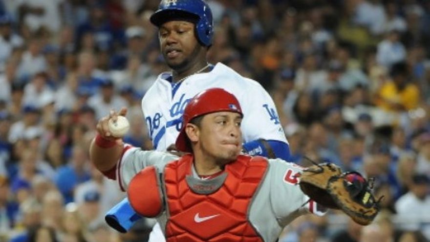 El dominicano Hanley Ramírez sacudió un cuadrangular de tres carreras contra Cliff Lee; A.J. Ellis bateó un sencillo productor en la novena entrada y los Dodgers de Los Ángeles vencieron 4-3 el sábado a los Filis de Filadelfia. Chase Utley pegó un cuadrangular a favor de Filadelfia en sus dos primeros turnos al bate contra Hyun-Jin Ryu. Pero los Dodgers ganaron por séptima ocasión en ocho partidos, recuperándose de la derrota 16-1 el viernes, la peor de la franquicia desde que fueron aplastados 19-2 de visita ante los Gigantes de Nueva York el 3 de julio de 1947. Ramírez abrió la novena contra el novato Justin de Fratus (2-3) con un sencillo. De Fratus dio una base por bolas a Andre Ethier antes de que Ellis alineara un batazo a la derecha, haciendo anotar a Ramírez. Por los Dodgers, el cubano Yasiel Puig de 4-1, una anotada. El mexicano Adrián González de 3-1, una anotada. Los dominicanos Ramírez de 4-3, dos anotadas, tres impulsadas; y Juan Uribe de 3-0. Por los Filis, el panameño Carlos Ruiz de 3-0.