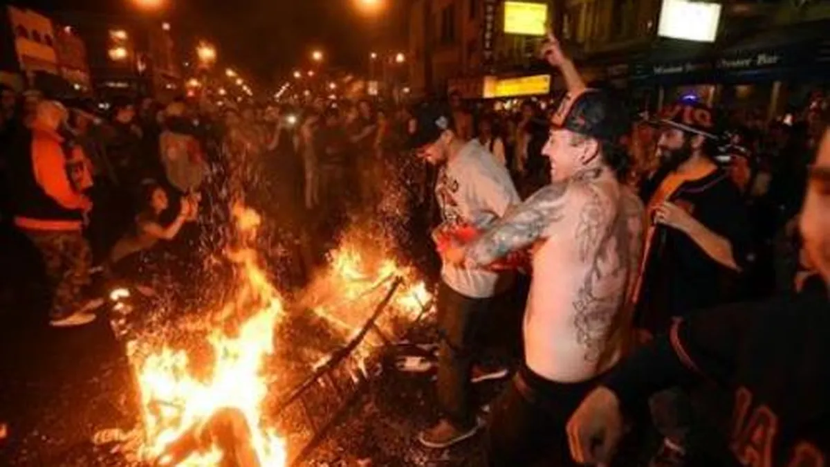 SAN FRANCISCO, California, EE.UU. (AP) -- Vitorearon juntos en cada jugada. Abuchearon al unísono cada vez que un lanzamiento se consideró bola. Y entonces, cuando la victoria era suya, un mar naranja y negro de aficionados colocados hombro con hombro coreó como uno solo. Los aficionados de los Gigantes congregados el miércoles en las calles de San Francisco descorcharon el champán, encendieron hogueras, bailaron en un pogo y abrazaron a desconocidos cuando su equipo logró su tercera victoria en las Series Mundiales en otras tantas apariciones en el torneo, una victoria tan agradable como el cálido aire de octubre tras el séptimo encuentro de la serie. "Sabía que íbamos a ganar. Son los gigantes, hacen esto todo el tiempo", dijo la nativa de San Francisco Barbra Norris, de 54 años, sobre el improbable resultado 3-2 que consiguió el equipo, jugando fuera de casa tras un aplastante blanqueada en Kansas City el día anterior. En algunos lugares, la atmósfera de fiesta se volvió más descontrolada al avanzar la noche. Tres personas resultaron heridas en incidentes separados, dos por disparos y una por arma blanca, indicó el vocero de la policía Gordon Shyy. Las lesiones por armas de fuego no ponían en peligro la vida de los heridos, señaló, pero no tenía detalles sobre el apuñalamiento. Poco después de que comenzaran las celebraciones, Shyy dijo que los agentes hicieron "un puñado de arrestos" cuando los fanáticos llenaron las calles y bloquearon el tráfico en torno al Civic Center, en el distrito de Mission, y en la calle Market, a distancia de paseo del AT&T Park. No hubo información actualizada sobre arrestos más tarde. El San Francisco Chronicle informó de que en la zona en torno a las calles Tercera y King se registraron más alborotos, con miles de aficionados lanzándose cerveza entre sí, destrozando botellas, encendiendo hogueras y disparando fuegos artificiales. Eso provocó una intervención de la policía antimotines, que estableció un perímetro en el área. El diario indicó que en un momento dado, la policía se alineó y algunas personas lanzaron botellas, algunas de las cuales se estrellaron en el suelo y otras contra los agentes. Las escenas de noche salvaje se prolongaron hasta la madrugada d