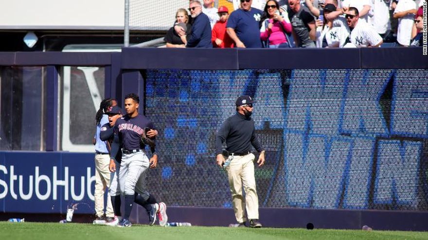 El jardinero derecho de Cleveland, Oscar Mercado , dijo más tarde a los periodistas que recibió una lata de cerveza que le arrojaron . Dijo que quería ver a los fanáticos en cuestión "responsables", pero agradeció que los jugadores de los Yankees les dijeran que se detuvieran.