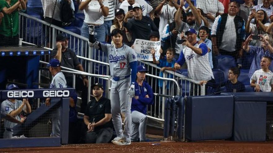 Ohtani se anotó la marca de 50-50 en la MLB con un jonrón en la séptima entrada del partido de los Dodgers contra los Marlins de Miami. Su segundo jonrón del partido significó su 50 de la temporada, luego de que dos bases robadas en el mismo partido llevaran su cuenta a 51 robos en esta campaña.