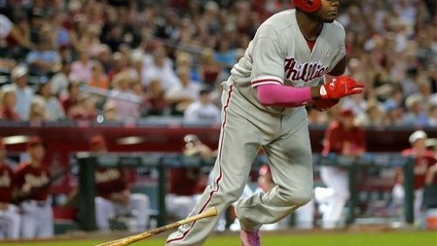 Ryan Howard impulsó dos carreras con un sencillo hacia el jardín derecho en la décima entrada, un capítulo después de que su equipo empatara con dos anotaciones y los Filis de Filadelfia ganaron el domingo 4-2 a los Diamondbacks de Arizona. Aunque Brandon McCarthy había controlado a los bateadores de los Filis en los primeros ocho episodios, Filadelfia anotó dos carreras en el noveno ante el cerrador de los Diamondbacks, Heath Bell. Jimmy Rollins consiguió un sencillo con un out en la décima ante Matt Reynolds (0-1) y Chase Utley conectó su cuarto hit, un doble que cayó en la esquina del jardín derecho. En sus anteriores 18 turnos al bate, Howard acumulaba nueve ponches en contra y ningún imparable hasta que prendió un sencillo. Justin De Fratus (1-0) sacó el último out en la novena entrada para la segunda victoria de su carrera, en tanto que Jonathan Papelbon trabajó la décima, en la que recibió un imparable y logró su séptimo salvamento en igual número de oportunidades. Por los Filis, el venezolano Freddy Galvis de 5-3 y el panameño Carlos Ruiz de 1-1 como bateador emergente. Por los Diamondbacks, los venezolanos Gerardo Parra de 5-2, una anotada y remolcada; Miguel Montero de 4-0; y Martín prado de 5-0.
