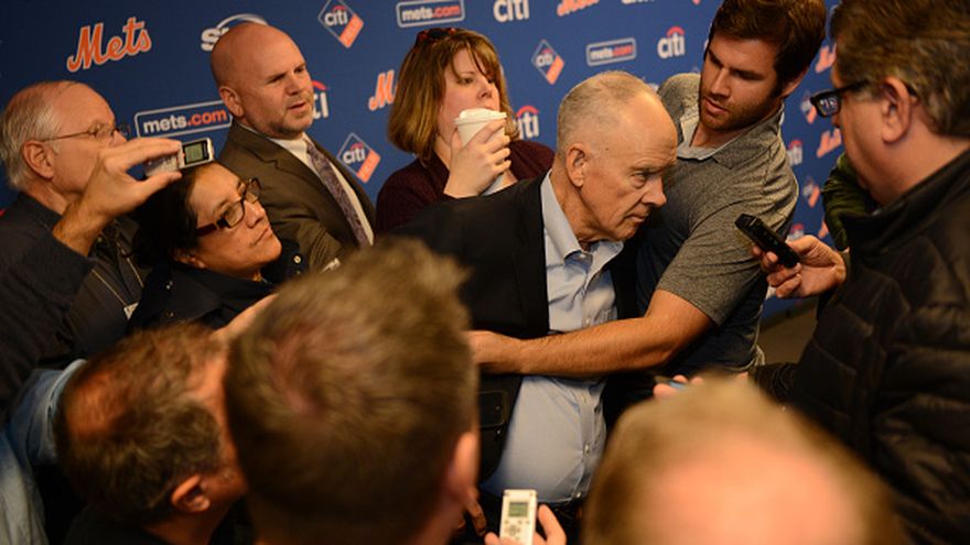 Tras recibir ayuda de varios reporteros y fotógrafos, el gerente general de los Mets pudo continuar con la conferencia de prensa pero lo hizo sentado, según el periódico Daily News.