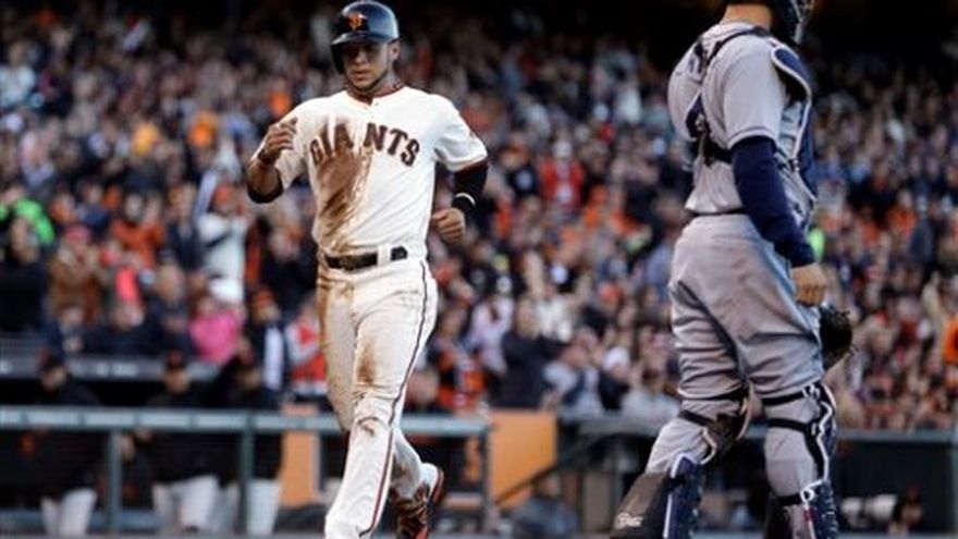 El dominicano Juan Pérez bateó un sencillo que dio el desempate con dos outs en la octava entrada y los Gigantes de San Francisco vencieron el martes 5-4 a San Diego, rompiendo la racha de siete victorias de los Padres. El batazo de Pérez sucedió después de que el venezolano Jesús Guzmán diera a San Diego la ventaja 4-3 con un cuadrangular de dos carreras en la parte alta de la entrada. Buster Posey inició el regreso de San Francisco con un sencillo al inicio del episodio. Después de que Hunter Pence fue ponchado, Brandon Belt conectó un doble que remolcó al boricua Andrés Torres, que entró como corredor emergente. Nick Noonan recibió una base por bolas intencional y el dominicano Joaquín Arias alineó un batazo al centro antes de que Pérez conectara un sencillo que permitió anotar la carrera del triunfo. Belt terminó con tres imparables, los Gigantes avanzaron al segundo lugar y ahora están empatados con Colorado en la División Oeste de la Liga Nacional. El venezolano Jean Machi (2-0) se llevó el triunfo lanzando un tercio de entrada. Dale Thayer cargó con la derrota a admitir dos carreras y tres hits en dos tercios de entrada. Por los Gigantes, los venezolanos Gregor Blanco de 3-2, una anotada, una impulsada; Marco Scutaro de 4-2; y Héctor Sánchez de 1-0. Los dominicanos Arias de 4-1, una anotada; Pérez de 3-1, una impulsada; y Tony Abreu de 1-0. El puertorriqueño Torres, una carrera anotada sin turno oficial al bate. Por los Padres, los venezolanos Guzmán de 1-1, una anotada, dos impulsadas; y Alexi Amarista de 3-0. El dominicano Pedro Ciriaco de 1-0. El cubano Yasmani Grandal de 1-0.