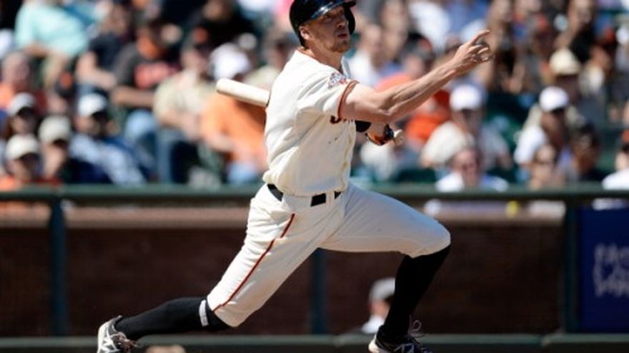 Hunter Pence conectó un doble que produjo dos carreras y significó la ventaja en la sexta entrada, y los Gigantes de San Francisco vencieron el sábado 3-2 a los Orioles de Baltimore. Chris Davis disparó su 42do jonrón de la campaña, la mayor cantidad de las Grandes Ligas, por Baltimore, en la apertura de la octava entrada frente al dominicano Santiago Casilla. Ante el taponero mexicano Sergio Romo, Davis conectó un rodado inofensivo, cuando había un corredor en la inicial, para que terminara el encuentro. Romo se apuntó su 27mo salvamento en 31 oportunidades, y los Gigantes ganaron en el AT&T Park apenas por tercera vez en sus últimos 10 encuentros como locales. Cayeron el viernes en 10 entradas, en el primer duelo de la serie. Nick Markakis añadió tres imparables, pero Baltimore vio cortada su racha de tres victorias consecutivas, en un día en que dejó escapar muchas oportunidades. El venezolano Guillermo Moscoso (1-0) lanzó dos innings sin admitir carrera, en su labor de relevista, para llevarse el triunfo. Wei-Yin Chen (6-5) cargó con la derrota. Por los Orioles, el cubano Henry Urrutia de 1-1. Por los Gigantes, los venezolanos Marco Scútaro de 4-1 con una anotada y una producida, Pablo Sandoval de 3-0, Gregor Blanco de 1-1. El dominicano Joaquín Arias de 4-0. El puertorriqueño Andrés Torres de 3-1 con una anotada.