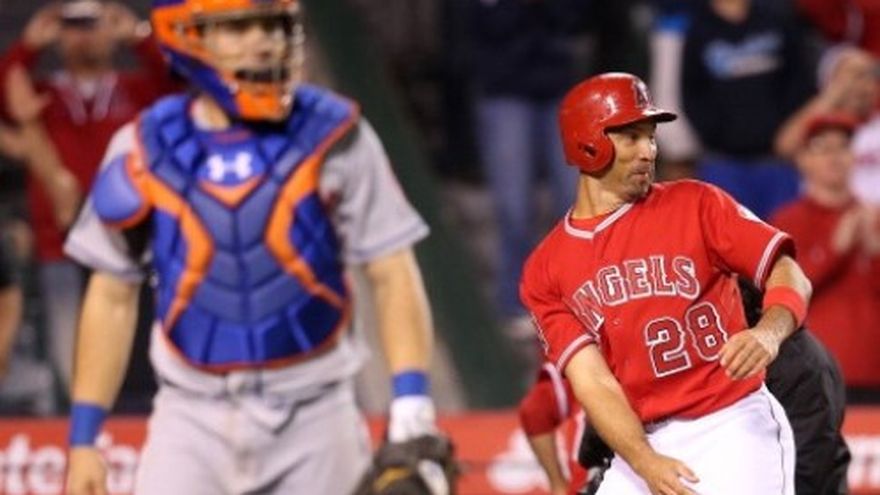 ANAHEIM, California (AP)-- Hank Conger fue golpeado por un lanzamiento con la casa llena en la undécima entrada y los Angelinos de Los Ángeles se impusieron el viernes 5-4 a los Mets de Nueva York. En un juego en que Mike Trout y J.B. Shuck conectaron sendos jonrones por los Angelinos, fueron dos boletos intencionales del dominicano Jeurys Familia los que abrieron la puerta al triunfo de la novena californiana. Raúl Ibáñez abrió la undécima entrada con un sencillo ante Familia (0-2), quien estaba en su tercer inning de relevo. Ibáñez avanzó con un lanzamiento descontrolado y ancló en la antesala con un rodado de David Freese al campocorto, antes de que el manager Terry Collins ordenara a Familia los pasaportes intencionales a Howie Kendrick y Shuck para buscar el out forzado en cualquier base. La estrategia resultó contraproducente cuando Familia propinó el pelotazo a Conger, con cuenta de 2-2. Michael Kohn (1-0) lanzó a la perfección un inning y se llevó la victoria. Por los Mets, el dominicano Juan Lagares de 4-1. El panameño Rubén Tejada de 4-1. Por los Angelinos, los dominicanos Albert Pujols de 5-1, Erick Aybar de 5-2.