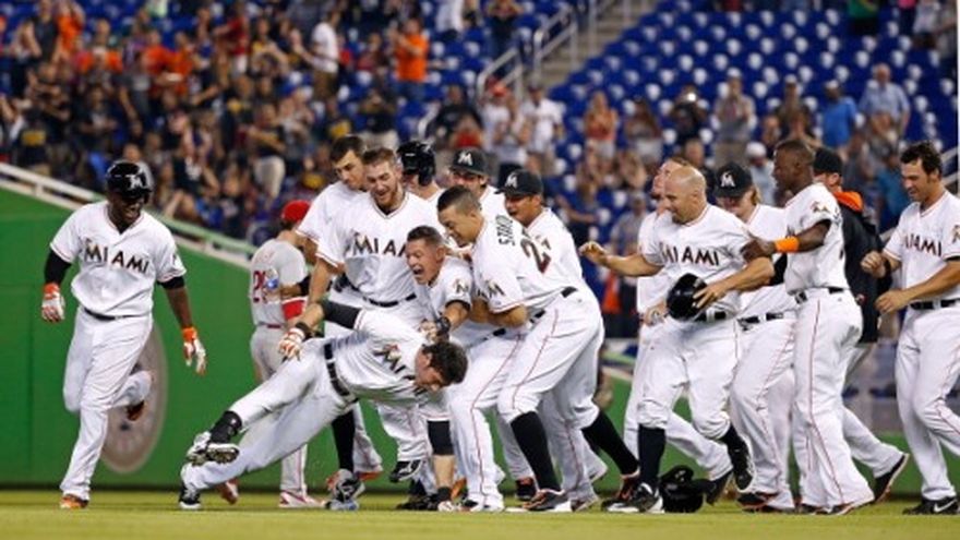 MIAMI (AP) -- Christian Yelich conectó un sencillo con dos outs y casa llena en el noveno episodio el jueves para dejar al rival en el terreno, la quinta ocasión en que los Marlins lo hacen esta temporada, y Miami venció 4-3 a los Filis de Filadelfia. Los Marlins ganaron pese a dejarse empatar en la octava entrada tras ir ganando 3-0. Miami se llevó la serie en casa y mejoró su foja a 19-6 como local, la mayor de Grandes Ligas. Por Filadelfia, Marlon Byrd igualó el partido en el octavo episodio con un cuadrangular de dos carreras, su sexto de la campaña. Y por Miami, el dominicano Marcell Ozuna pegó un jonrón de dos anotaciones para sumar dos vuelacercas y siete carreras remolcadas en los últimos dos juegos. Ozuna aportó un sencillo con un out en el noveno inning frente a Jake Diekman (2-2) para luego avanzar a segunda base con un sencillo de Jeff Mathis. El emergente Reid Johnson llegó a primera con un sencillo al cuadro para llenar la casa, y Yelich definió con su hit al central. El abridor venezolano Henderson Álvarez se fue sin definición por Miami luego de lanzar siete entradas en las que permitió cuatro imparables sin recibir carrera. Ponchó a tres y dio dos pasaportes. Por los Marlins, el dominicano Ozuna de 4-2 con dos anotadas y dos producidas. El cubano Adeiny Hechavarría de 4-0. El venezolano Álvarez de 2-0. El colombiano Donovan Solano de 1-0. Por los Filis, el puertorriqueño Wil Nieves de 5-1.
