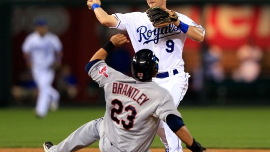El dominicano Carlos Santana y el venezolano Asdrúbal Cabrera remolcaron un par de carreras cada uno, y los Indios de Cleveland se aprovecharon del pitcheo descontrolado de los Reales de Kansas City para vencerlos el martes por 6-5. Mark Reynolds y Jason Giambi produjeron también carreras por Cleveland, que aprovechó ocho boletos obsequiados por el abridor mexicano Luis Mendoza y por los relevistas, para ganar su quinto duelo en fila. Cody Allen (3-0) se llevó el triunfo como relevista de Cleveland, mientras que Chris Pérez sobrevivió pese a permitir que dos enemigos se embasaran en el noveno episodio, para su octavo salvamento de la temporada. Los Indios, líderes de la División Central de la Liga Americana, ganaban por 4-0 antes del grand slam de Alex Gordon en el quinto acto. Pero el relevista de los Reales, Tim Collins (2-3) dio pasaporte a sus únicos dos rivales del séptimo capítulo. Aaron Crow regaló otra base por bolas para llenar la casa y Santana elevó un globo de sacrificio que significó la ventaja. Giambi añadió un doble productor, también en el séptimo capítulo. Ese batazo resultó valioso después de que Billy Butler conectó un doble ante Vinnie Pestano para poner la pizarra en 6-5. Por los Indios, el venezolano Cabrera de 4-1 con una anotada y dos producidas. El dominicano Santana de 1-0 con dos impulsadas. Por los Reales, los venezolanos Alcides Escobar de 5-0, Salvador Pérez de 3-1. El lanzador panameño Bruce Chen lanzó los últimos dos episodios del partido en los que permitió dos hits, no le anotaron carreras y dio dos ponches por los Reales.