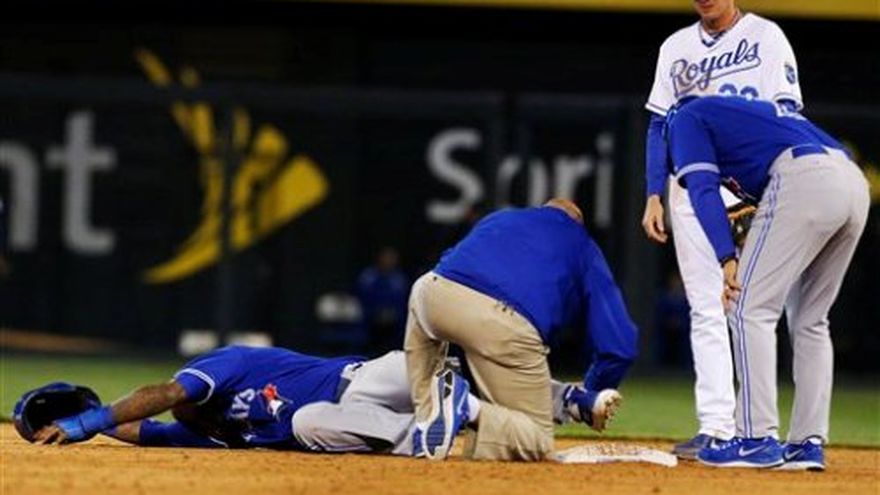 osé Reyes no reaparecería hasta después de la pausa por el Juego de Estrellas debido a un severo esguince en el tobillo de izquierdo. Luego de apenas 10 juegos en su carrera con los Azulejos de Toronto, el torpedero dominicano se lesionó tras deslizarse mal en la intermedia en la victoria 8-4 el viernes ante los Reales de Kansas City. "Es frustrante. Me encanta mucho el béisbol", dijo Reyes. "Me encanta estar con mis compañeros en el terreno de juego y ayudar al equipo. Ahora sé que no voy a estar ahí durante un tiempo. Resulta un tanto decepcionante para mí. He pasado por algunas lesiones en mi carrera. No me gusta. Las lesiones forman parte del juego y yo tengo que lidiar con ello". Reyes, cuatro veces elegido al Juego de Estrellas, fue colocado el sábado en la lista de incapacitados de 15 días. "El resultado de una resonancia magnética no mostró fractura, pero es una torcedura severa", dijo el gerente general de los Azulejos, Alex Anthopoulos. "Por ahora, parece que serán como tres meses, y eso tan sólo al punto en que esté de regreso a un partido de Grandes Ligas. Podrían ser de seis a ocho semanas de descanso y rehabilitación". El club subió de Triple A al campocorto Munenori Kawasaki. Reyes había sido uno de los pocos puntos positivos para Toronto esta campaña, bateando .412, con un jonrón y tres empujadas, además de robarse cuatro bases. Se lesionó al titubear entre deslizarse o llegar parado a la segunda base en un intento de robo. Optó por deslizarse, y el tobillo se le torció al pararse sobre la almohadilla. Reyes reconoció que se deslizó demasiado tarde. Reyes gritó por el dolor mientras rodaba por el suelo, y seguidamente se alzó la camiseta sobre el rostro, mientras los entrenadores de ambas bancas se le acercaban corriendo. Fue sacado del terreno en camilla y el tobillo estaba fuertemente vendado al salir del vestuario en una silla de ruedas, en camino al hospital. Sufrió una lesión similar en su campaña de novato en el 2003, cuando estaba con los Mets de Nueva York. El veloz pelotero, de 29 años, tuvo un esguince de segundo grado en el tobillo izquierdo cuando se deslizaba en segunda base durante un partido contra los Filis y terminó pasándose 15 días en la lista de lesionados. Los Azulejos ya andan diezmados en el cuadro, con Brett Lawrie en la lista de lesionados con una dolencia muscular en el abdomen y el venezolano Máicer Izturis con una lesión en un pie.