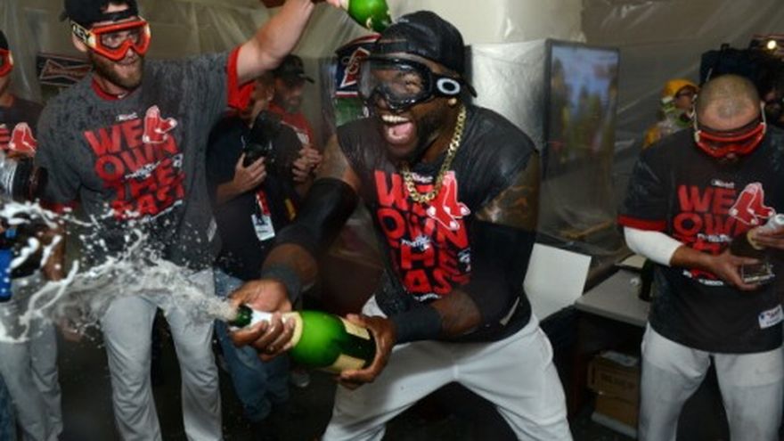 Los Medias Rojas de Boston aseguraron el viernes el título de la División Este de la Liga Americana con un buen desempeño de Jon Lester, el cual les permitió derrotar 6-3 a los Azulejos de Toronto y eliminar a Tampa Bay de la contienda por el banderín. Una noche después de asegurar su primer boleto a los playoffs desde 2009, los Medias Rojas agregaron su primer título de división desde 2007. Boston comenzó la noche con el número mágico de uno, lo que significaba que su próxima victoria o una derrota de los Rays les daría la división. Lester (15-8) permitió una anotación con cinco hits y dos pasaportes, al tiempo que ponchó a ocho para ganar por séptima ocasión en nueve decisiones. Fue el centésimo triunfo de su carrera. El emergente Adam Lind de Toronto bateó un jonrón de dos carreras ante el relevista Junichi Tazawa en el octavo para poner la pizarra 5-3, antes que Koji Uehara sacase cinco outs y se llevara su vigésimo salvamento. Con el público de pie casi todo el episodio final, Uehara ponchó a Brett Lawrie para cerrar el partido y los Medias Rojas salieron en masa al terreno. Dustin Pedroia tuvo tres hits por Boston, que ha ganado 19 de sus últimos 25 partidos. El abridor Esmil Rogers (5-8) de Toronto no pasó del tercer inning, luego de que permitió dos carreras y tres hits, además de regalar cinco boletos y ponchar a dos. Toronto llenó las bases sin outs en el cuarto inning, al combinar un boleto, un error del antesalista Will Middlebrooks y un sencillo. Pero Middlebrooks atrapó una roleta de botes altos de Anthony Gose, pisó la tercera base y lanzó al plato para sacar a Kevin Pillar, completando la doble matanza. Lester sacó el tercer out al ponchar a J.P. Arencibia. Los Azulejos anotaron una en el quinto episodio, acercándose 2-1, pero Neil Wagner toleró cuatro sencillos consecutivos al principio del séptimo, incluido uno productor del dominicano David Ortiz, y Boston agregó dos más en el episodio. Pedroia empujó la última con un sencillo en el octavo. Por los Medias Rojas, el dominicano Ortiz de 2-1, una empujada y una anotada. Por los Azulejos, los dominicanos José Reyes de 5-1 y Moisés Sierra de 3-1.