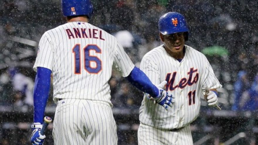 El bateador emergente Evan Gattis conectó un sencillo productor de dos carreras en la parte alta de la octava entrada, luego los Mets empataron la pizarra en la parte baja antes de que el juego entre los Bravos de Atlanta y Nueva York fuera suspendido por lluvia la noche del viernes con un marcador de 5-5. El juego se reanudará el sábado en la novena entrada sin outs a las t 6:10 p.m. El juego agendado para el sábado iniciaría a las 7:15 p.m. Con la lluvia comenzando a caer fuertemente, Gattis puso adelante a Atlanta por 5-3 con un sencillo con casa llena contra Greg Burke. Los Mets empataron en una parte baja con chubasco aprovechando un error del jardinero central B. J. Upton en un sencillo productor de una carrera de Daniel Murphy y anotando en un lanzamiento descontrolado de Anthony Varvaro. El juego fue suspendido después de una espera de 75 minutos. Por los Bravos, el dominicano Juan Francisco de 3-0. El mexicano Ramiro Peña de 1-1. Por los Mets, el panameño Rubén Tejada de 4-1 con una carrera anotada. El dominicano Jordany Valdespin de 1-0.