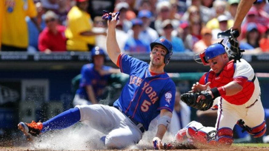 FILADELFIA (AP) -- Lucas Duda conectó un jonrón de dos carreras cuando había un par de outs en la undécima entrada, y los Mets de Nueva York superaron el domingo 4-3 a los Filis de Filadelfia, en el tercer encuentro seguido que ambos equipos dirimen en episodios extras. Los Mets y los Filis dividieron honores en un par de juegos de 14 entradas, los dos días anteriores. Se combinaron para jugar casi 11 horas. El juego del domingo duró tres horas y 29 minutos. Duda entró al terreno en la décima entrada para jugar en la primera base. Sacudió su vuelacerca en la undécima para que los Mets ganaran por quinta ocasión en seis compromisos. Ryan Howard había bateado un cuadrangular de dos carreras en el comienzo del encuentro, por los Filis. Marlon Byrd pegó un bambinazo solitario en la undécima entrada. Josh Edgin (1-0) ponchó a sus tres rivales de la décima entrada. El dominicano Jenrry Mejía consiguió su sexto salvamento en el mismo número de oportunidades. Phillippe Aumont (0-1), convocado poco antes del encuentro para dar algo de ayuda al fatigado bullpen de Filadelfia, sacó los primeros dos outs en la undécima entrada. Luego de un boleto a Travis d"Arnaud, Duda disparó su octavo cuadrangular de la campaña, entre el jardín izquierdo y el central. Por los Mets, el dominicano Juan Lagares de 5-1. El panameño Rubén Tejada de 5-1. El venezolano Bobby Abreu de 1-0. Por los Filis, el panameño Carlos Ruiz de 5-2 con una anotada. El venezolano César Hernández de 4-1.