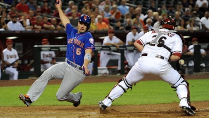 PHOENIX (AP) -- Lucas Duda conectó cuatro imparables y remolcó dos carreras, mientras que Zack Wheeler lanzó con efectividad hasta el séptimo capítulo, para que los Mets de Nueva York vencieran el lunes 7-3 a los Diamondbacks de Arizona. David Wright añadió dos producidas y los Mets pegaron 13 imparables para abrir una serie de tres juegos en el desierto. Pese al triunfo, el enfrentamiento tuvo su costo para Nueva York. El dominicano Juan Lagares abandonó el duelo en el séptimo inning, por un tirón en un muslo, luego de correr a la inicial para embasarse en un rodado. Curtis Granderson dejó también el encuentro en el sexto episodio, por lesiones en las costillas y en un antebrazo, tras estrellarse contra el muro en el primer acto. Las radiografías descartaron que Granderson haya sufrido fracturas. Wheeler (1-2) salió de predicamentos para dejar atrás una racha de cinco aperturas sin ganar. Carlos Torres sacó los últimos ocho outs para su primer salvamento de por vida. El venezolano Miguel Montero impulsó tres carreras por los Diamondbacks, que perdieron su sexto encuentro seguido en el Chase Field, luego que Josh Collmenter (0-1) toleró tres anotaciones en los primeros tres actos. Por los Mets, el dominicano Lagares de 4-1. El panameño Rubén Tejada de 5-1 con una impulsada. Por los Diamondbacks, los venezolanos Gerardo Parra de 4-0 con una anotada, Montero de 3-3 con tres empujadas, Martín Prado de 4-0.