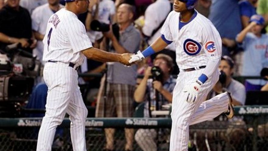 El dominicano Starlin Castro conectó un cuadrangular y todo el orden al bate de los Cachorros de Chicago desfiló por el plato en la séptima entrada para anotar cuatro carreras que derivaron el miércoles en un triunfo por 5-1 sobre los Marlins de Miami, en un encuentro abreviado por la lluvia. Un aguacero comenzó a caer en la parte alta de la octava entrada, cuando Miami bateaba, y los equipos nunca volvieron al terreno. El encuentro se dio por concluido tras una interupción de una hora y 17 minutos. Castro empalmó su octavo jonrón de la temporada, frente al abridor de los Marlins, Josh Johnson (5-7), en la apertura del cuarto episodio. El emergente Jeff Baker coronó un racimo en el séptimo inning, con un doblete que produjo dos carreras, con las bases llenas. James Russell (3-0) lanzó la séptima entrada sin tolerar carreras para llevarse la victoria como relevo de Jeff Samardzija, quien ponchó a nueve rivales en cinco actos. El dominicano José Reyes conectó un vuelacerca por Miami y su compatriota Emilio Bonifacio sumó tres inatrapables, para quedarse a un jonrón del ciclo. Por los Marlins, los dominicanos Reyes de 4-1 con una anotada y una producida, Bonifacio de 4-3, Hanley Ramírez de 4-1. El panameño Carlos Lee de 1-0 y recibió tres bases por bolas. El venezolano Omar Infante de 4-1. Por los Cachorros, los dominicanos Castro de 3-1 con una anotada y una empujada, Alfonso Soriano de 3-1 con una anotada. El puertorriqueño Geovany Soto de 3-1 con una anotada y una producida. El venezolano Luis Valbuena de 3-1 con una anotada.