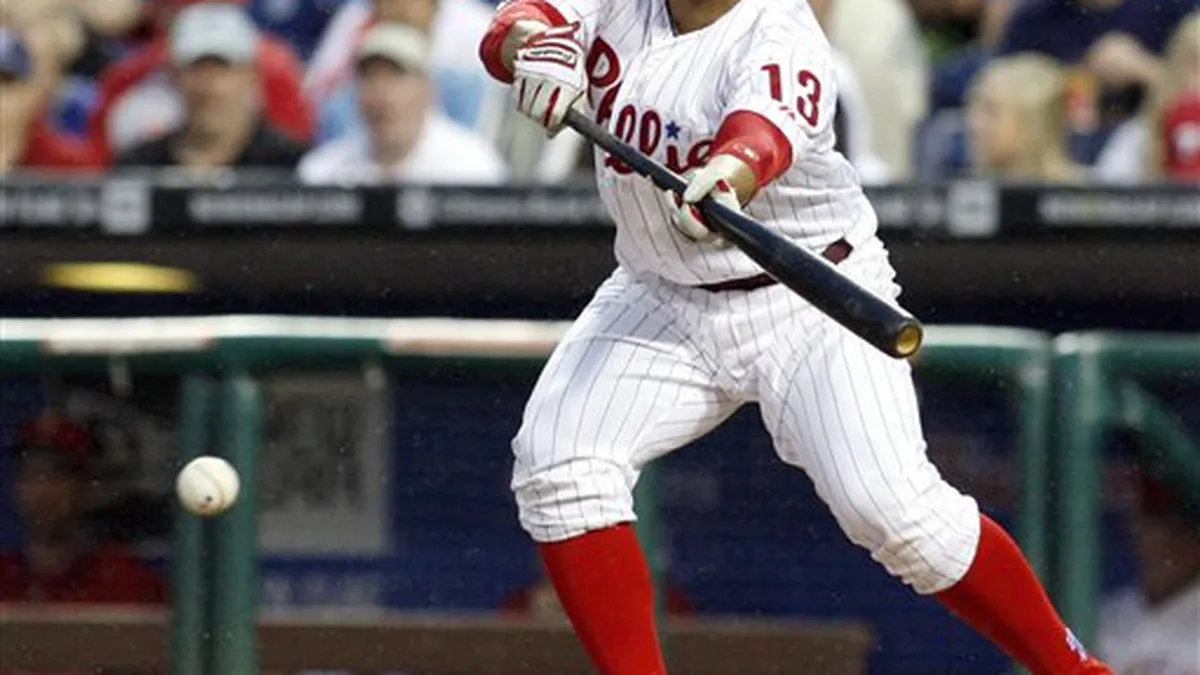 El dominicano Plácido Polanco bateó el hit 2.000 de su carrera, el venezolano Freddy Galvis conectó tres imparables y remolcó a dos para conducir a los Filis de Filadelfia a una victoria el lunes de 5-1 sobre los Astros de Houston. Bajo una llovina constante, Joe Blanton (4-3) lanzó siete buenas entradas en las que permitió seis imparables y una carrera, ponchó a siete y regaló una base por bolas. El derecho continuó con su racha de buenas salidas: en sus últimas cuatro aperturas mejoró a 3-0 con una efectividad de 2.10. El panameño Carlos Ruiz se fue de 4-2 con una producida para los Filis, que han ganado tres partidos de cuatro desde la muy publicitada reunión del manager Charlie Manuel con el equipo el miércoles pasado. Ruiz llegó al partido encabezando a todos los catchers de las Grandes Ligas en promedio con el bate (.330), carreras producidas (22) y slugging (.588). El venezolano Marwin González, quien abrió el octavo inning como bateador emergente, conectó su primer cuadrangular en las mayores para remolcar la solitaria carrera de los Astros. Por los Astros, los venezolanos José Altuve de 4-1 y González de 1-1, con una anotada y una remolcada. El panameño Carlos Lee de 4-3. Por los Filis, el panameño Ruiz de 3-2, con una anotada y una empujada. El dominicano Polanco de 3-1, con tres anotadas y dos impulsadas. El venezolano Galvis de 4-3, con dos producidas.