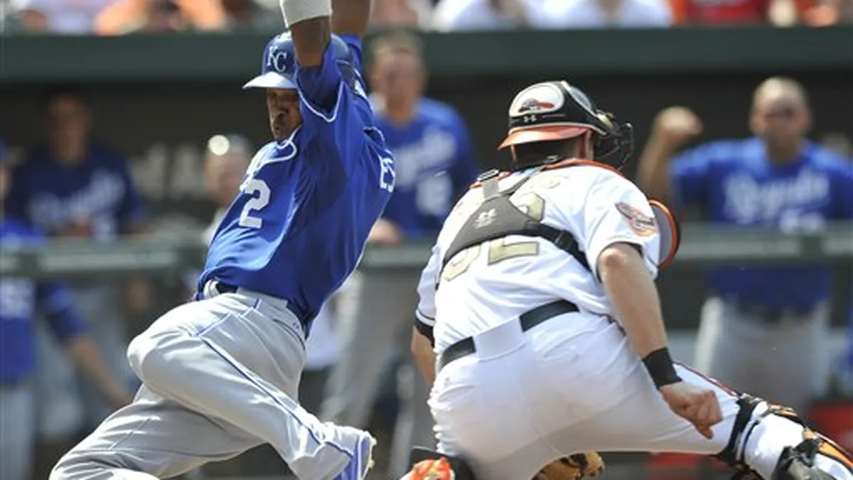 Vin Mazzaro lanzó magistralmente a lo largo de seis innings y los Reales de Kansas City vencieron el domingo 2-0 a los Atléticos de Oakland, víctimas de su tercera blanqueada en cuatro juegos. Eric Hosmer pegó un jonrón para los Reales. Oakland ha perdido 10 de sus últimos 11 partidos. Mazzaro (2-0), quien lanzó con los Atléticos en 2009-10 antes de ser traspasado a los Reales, diseminó cuatro sencillos, dio tres boletos y ponchó a tres. Los relevistas Kelvin Herrera, Greg Holland y Jonathan Broxton permitieron un hit cada uno en un inning de trabajo al completar la quinta blanqueda de los Reales en el año. Broxton lleva 13 rescates en 15 oportunidades. Por los Atléticos, el cubano Yoenis Céspedes de 4-0. Por los Reales, el venezolano Alcides Escobar de 3-0. Los cubanos Yuniesky Betancourt de 4-1 y Brayan Peña de 3-0.