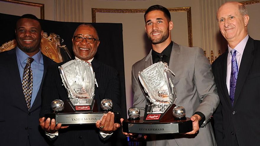 El receptor boricua de los Cardenales, Yadier Molina, y el jardinero central de los Rays, Kevin Kiermaier, fueron reconocidos con los Guantes de Platino Rawlings.