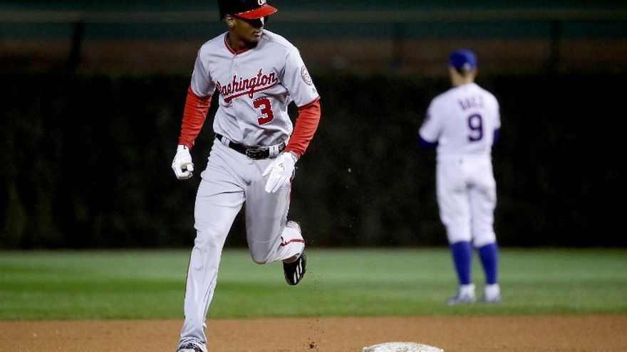 Los Nacionales rompieron el celofán en el tercero por doblete del torpedero Trear Turner, 'wildpitch' del lanzador boricua Jake Arrieta, boleto a Bryce Harper y error del campocorto Addison Russell, que permitió anotar a Turner.