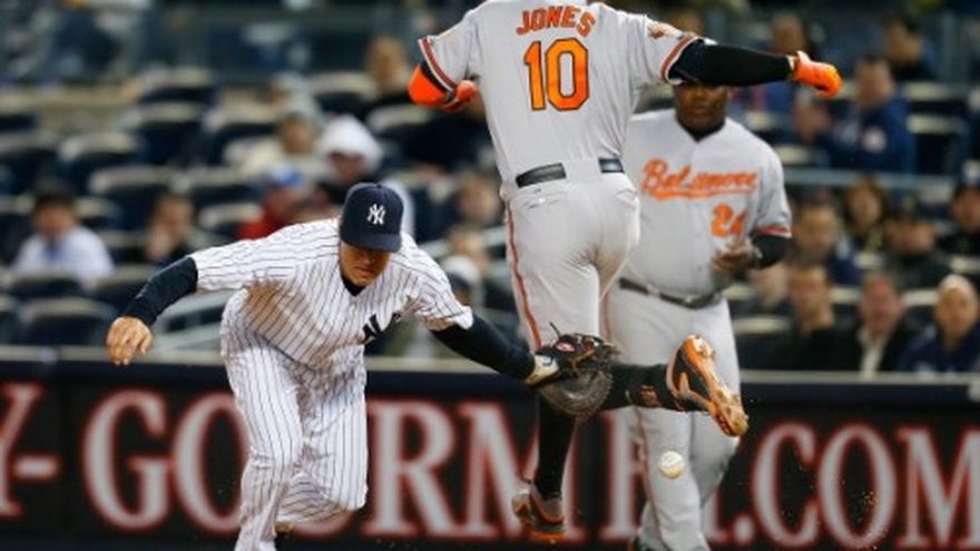 NUEVA YORK (AP) -- Nick Markakis remolcó una carrera con un sencillo y Chris Davis trajo otra con un elevado de sacrificio en el noveno episodio ante Shawn Kelley, y los Orioles de Baltimore reaccionaron para vencer el miércoles 5-4 a los Yankees de Nueva York. Baltimore pudo ganar tras desperdiciar una delantera de tres carreras ante Masahiro Tanaka. Jonathan Schoop sacudió un jonrón de tres carreras ante Tanaka en el segundo inning de su primera apertura en el Yankee Stadium. Pero los Yankees respondieron con jonrones del puertorriqueño Carlos Beltrán y Kelly Johnson ante el mexicano Miguel González en la parte baja del inning. Los Orioles, que batearon siete hits con 10 ponches ante Tanaka en siete innings, fabricaron su carrera con una ráfaga de cuatro sencillos seguidos al bosque central ante Kelley (0-1). Tommy Hunter toleró una carrera ante de obligar al venezolano Yangervis Solarte que bateara un rodado de doble play para su tercer salvado. Brian Matusz (1-0) sacó dos outs para acreditarse la victoria. Por los Orioles, el dominicano Nelson Cruz de 4-0. El zurdo González toleró tres carreras y siete hits en seis innings. Por los Yankees, el boricua Beltrán de 3-3, dos anotadas y una remolcada. El venezolano Solarte de 4-1. El dominicani Alfonso Soriano de 4-1, con una anotada y remolcada.