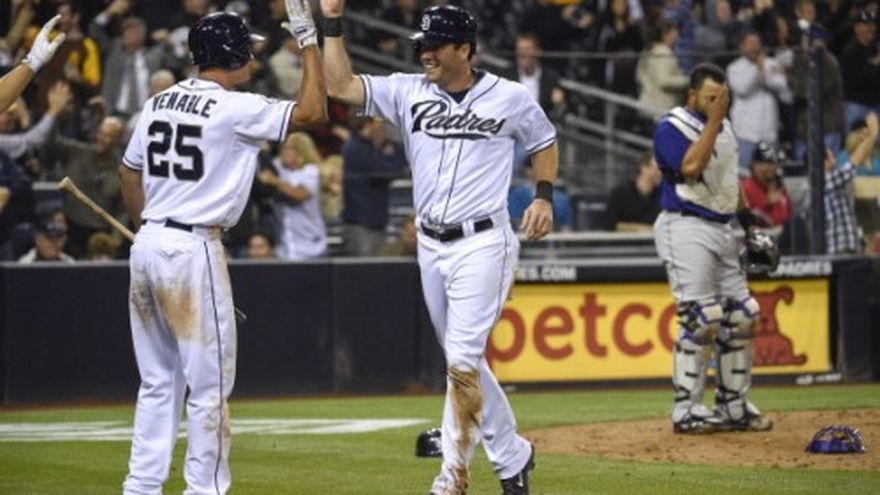 SAN DIEGO (AP) -- Los Padres de San Diego anotaron dos carreras en la octava entrada gracias al lanzamiento descontrolado del pitcher Rex Brothers y el error del receptor Edwin Rosario al enviar la pelota al plato, con lo se impusieron 5-4 a los Rockies de Colorado el lunes por la noche. Los Rockies tenían ventaja de una carrera cuando Brothers dio un pasaporte para llenar las bases con dos fuera. Al enfrentar al cubano Yasmani Grandal hizo un lanzamiento descontrolado al home y cuando el receptor Edwin Rosario recuperó la pelota la lanzó por la cabeza de Brothers quien corrió a asistir en el plato. El doble error permitió que Xavier Nady anotara y mientras la pelota rodaba más allá del montículo Seth Smith corrió desde la segunda base para dar la delantera definitiva de 5-4 a los Padres de San Diego. El domingo Brothers (1-2) había permitido el vuelacercas de la victoria a Brandon Crawford en el encuentro que Colorado perdió 5-4 con San Francisco en 10 entradas. El receptor dominicano Wilín Rosario conectó un cuadrangular productor de dos carreras con un batazo al jardín derecho en el quinto inning que dio a Colorado una efímera ventaja de 4-0. Por los Padres el torpedero dominicano Edwar Cabrera bateó de 4-1 con una producida y una anotada, el venezolano Luis Amarista de 2-1 con una producida, el cubano Yonder Alonso de 3-1 con una anotada.