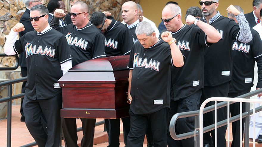 De la ceremonia realizada en la iglesia de San Brendan participan sus familiares, incluida su novia quien hace menos de un mes había confirmado que estaba embarazada, sus amigos y el plantel de los Miami Marlins, equipo en el que se lucía el cubano de 24 años.