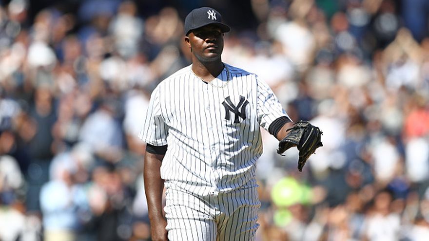 El lanzador dominicano permitió apenas dos imparables en siete entradas y dos tercios, se marchó en medio de una ovación atronadora y todo ya listo para que los Yanquis asegurasen la victoria.